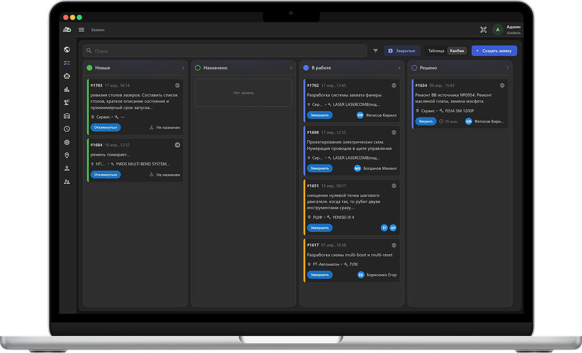 отказы и работы накапливаются по объекту — можно сопоставлять доработки и поведение станка, а не опираться на разовые отчёты